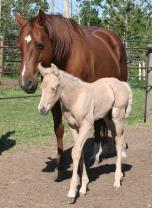 “Masters Painted Scout” (left) Palomino Tovero APHA Colt |